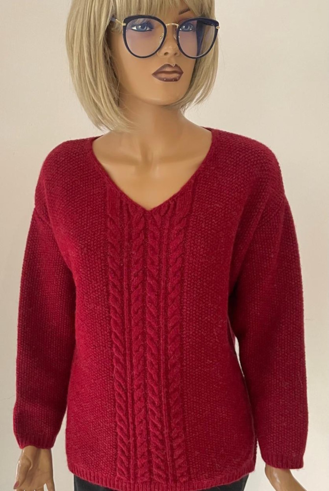 Elegancki sweter wykonany z wysokiej jakości mieszanki moheru i wełny (50% moher, 50% wełna), dostępny w dwóch ponadczasowych kolorach – bordo i beżowym. Charakteryzuje się klasycznym, prostym krojem z delikatnym splotem wzdłuż przodu. Doskonały wybór na chłodniejsze dni, idealnie komponujący się zarówno z jeansami, jak i eleganckimi spodniami.Idealny wybór dla osób ceniących komfort, elegancję i ciepło.